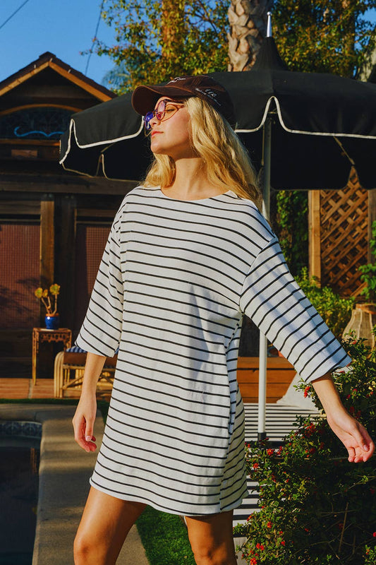 Classic Stripe Rugby Polo With Collar Shirt: BLACK/CREAM