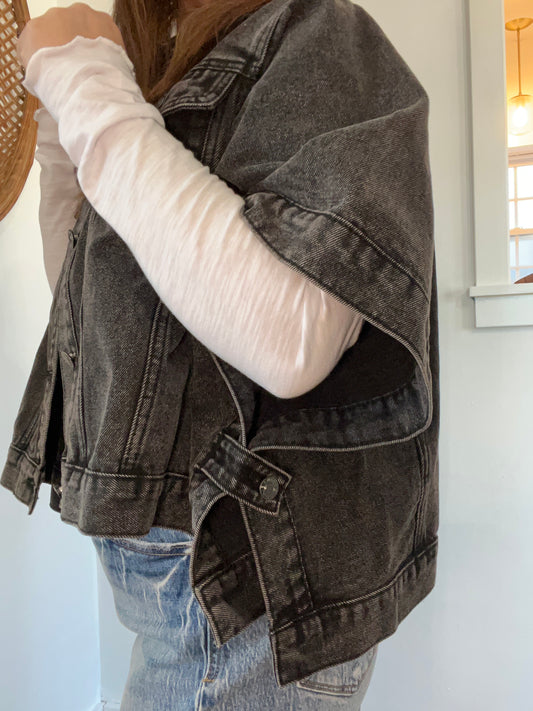 Acid Wash Cropped Balloon Sweatshirt: BLACK