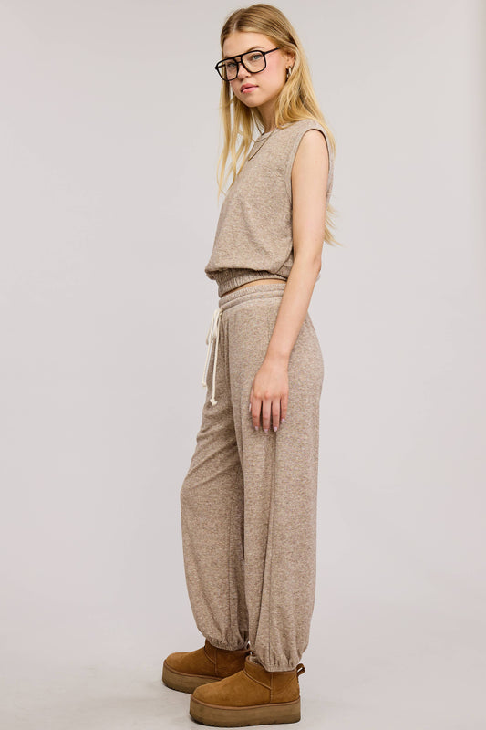 Terry Knit Tank and Jogger Sweatpants Matching Set : Toffee