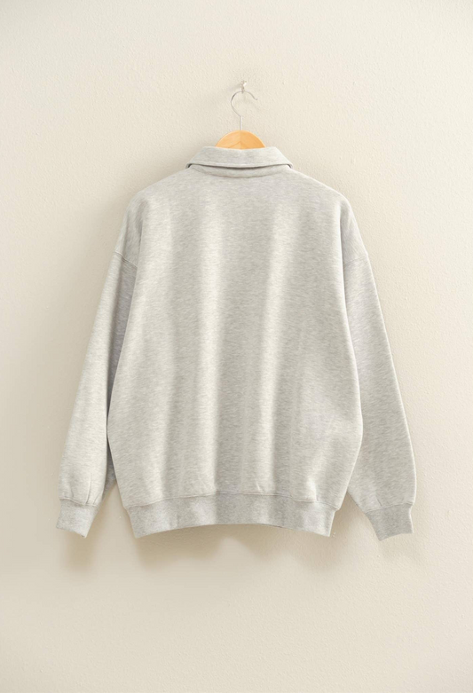 Oversized Polo Collared Pullover: HEATHER GRAY
