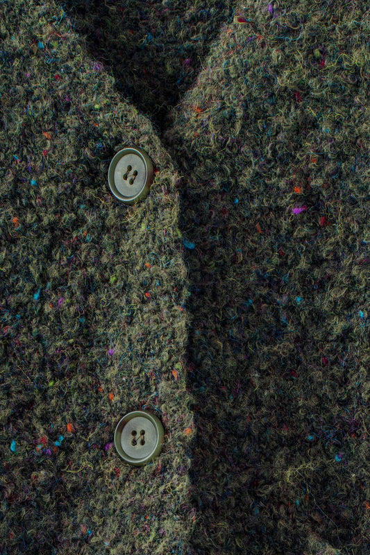 Confetti Boucle Textured V-Neck Cardigan: OLIVE