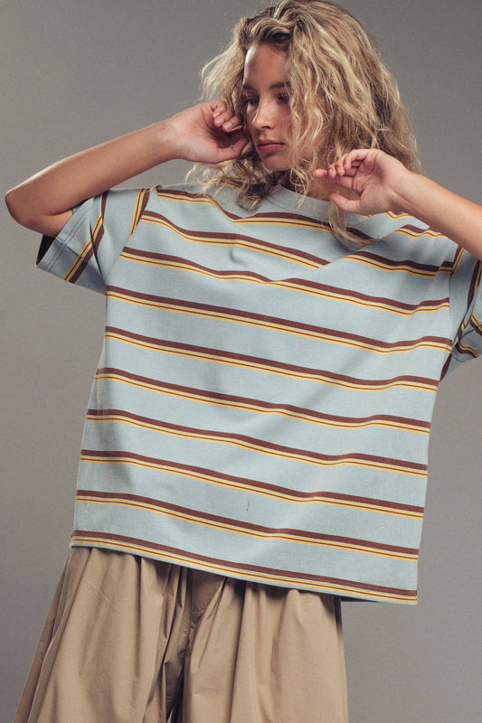 Oversized Striped Western Relaxed Fit Tee: BLUE BROWN