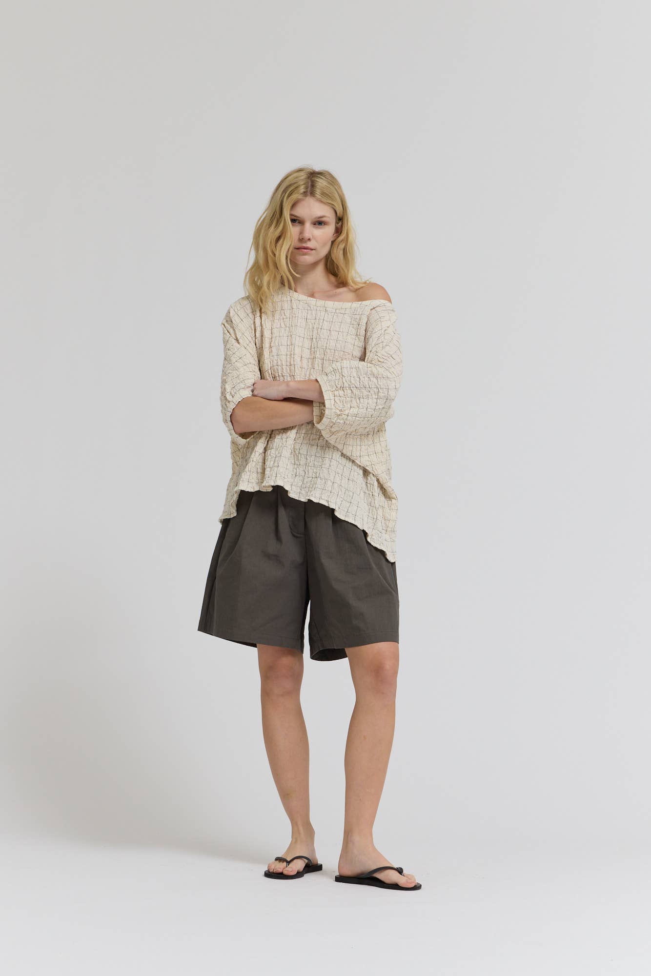 CHECK PRINT GAUZE BLOUSE 100% COTTON IMPORTED
