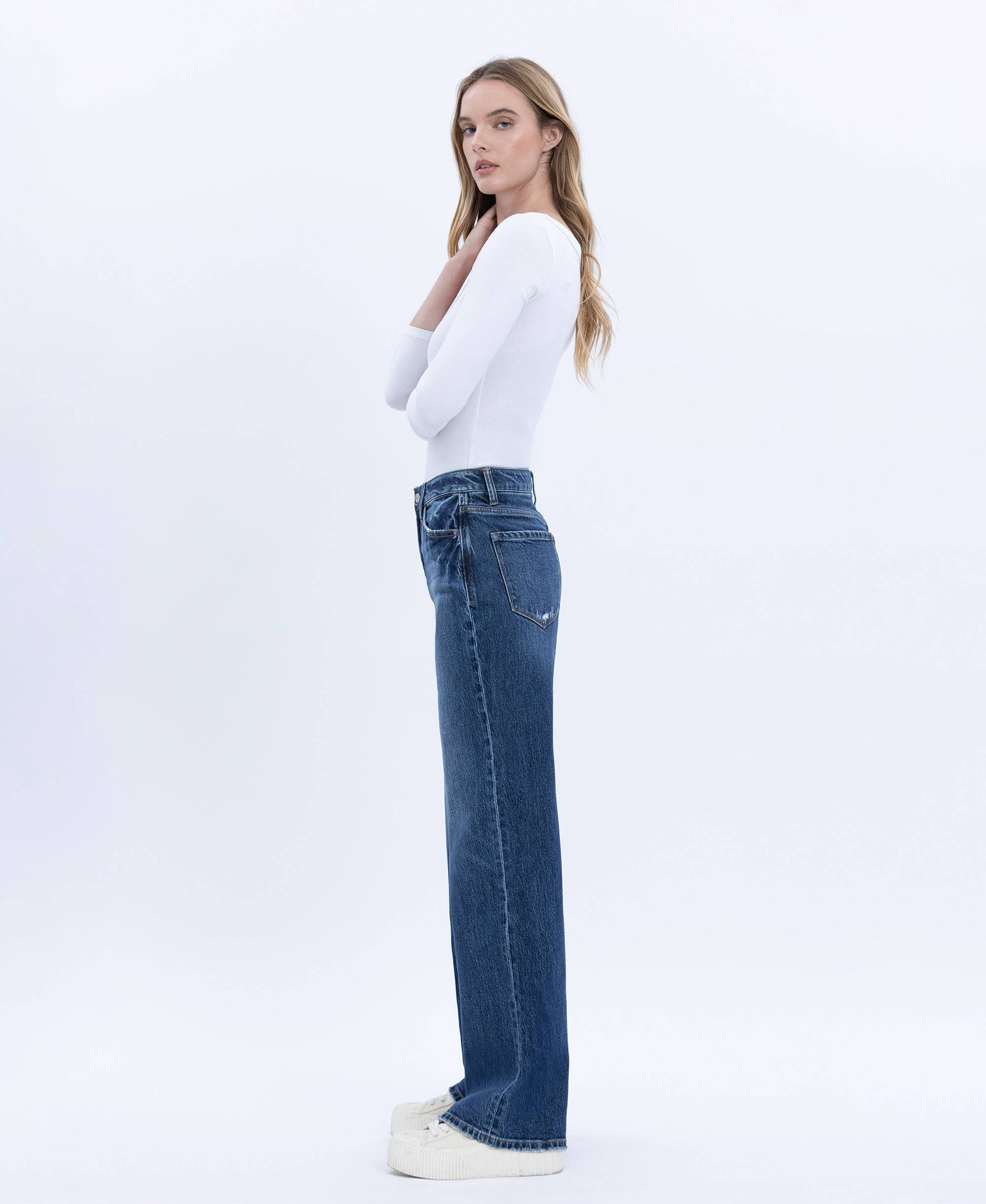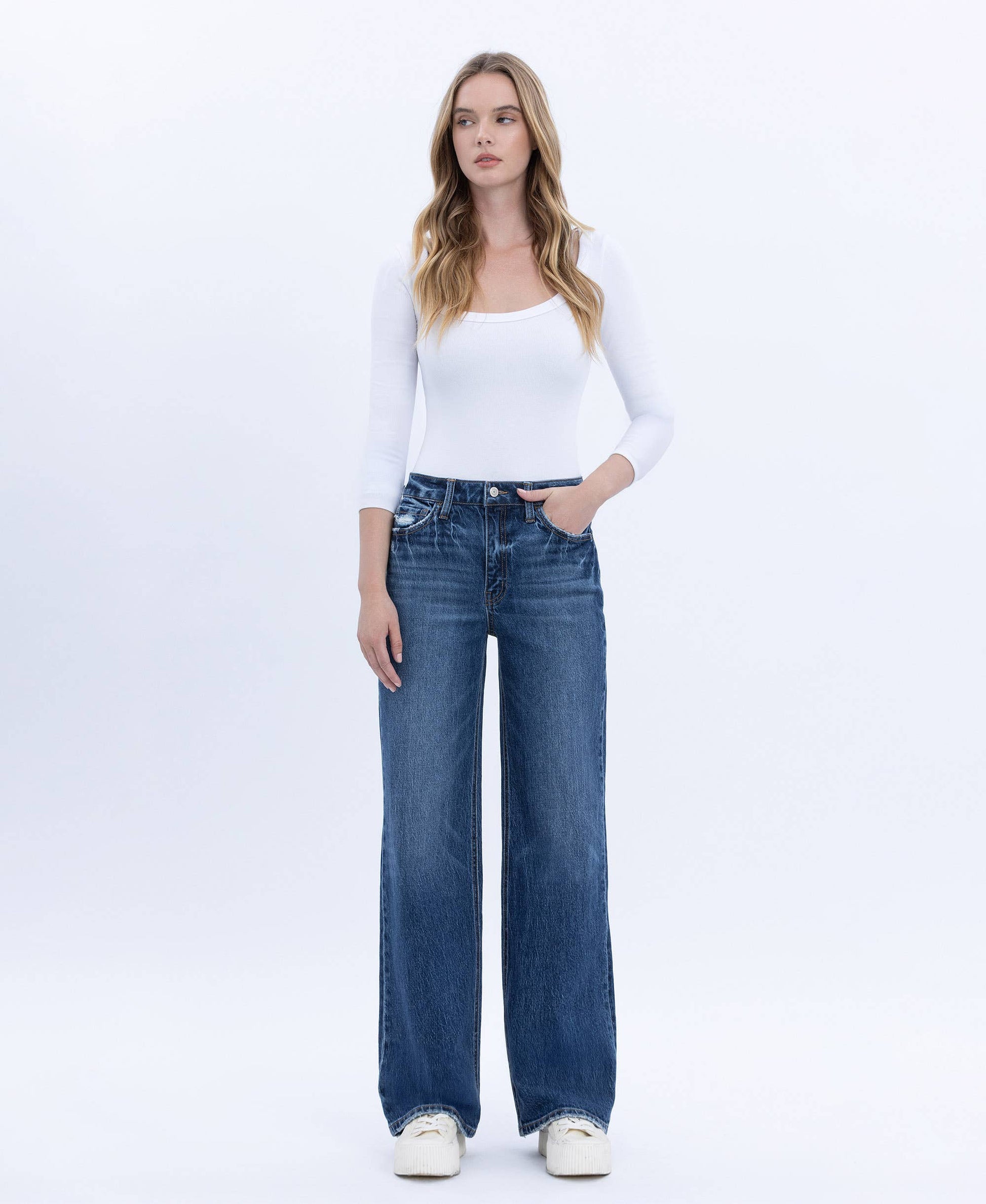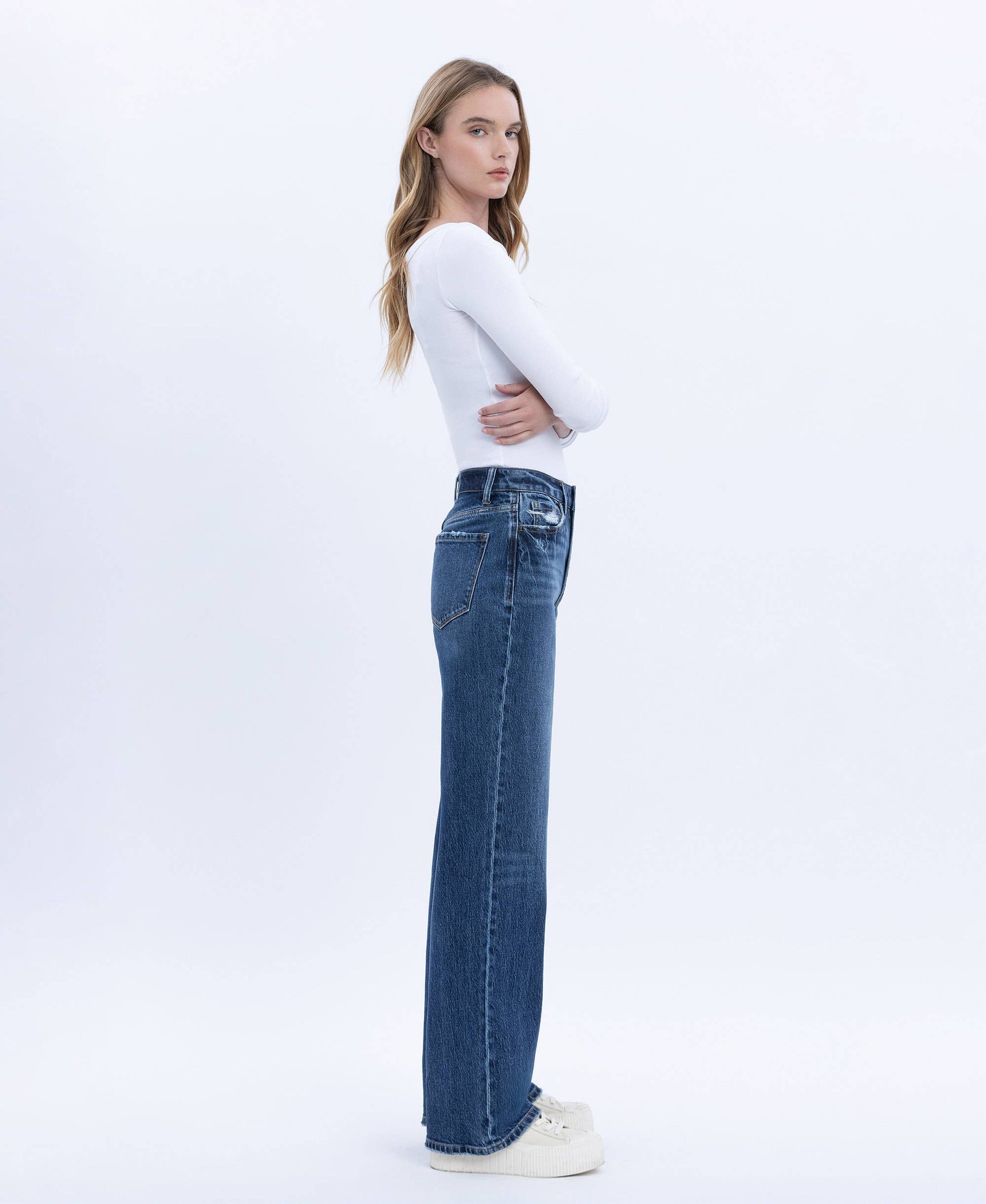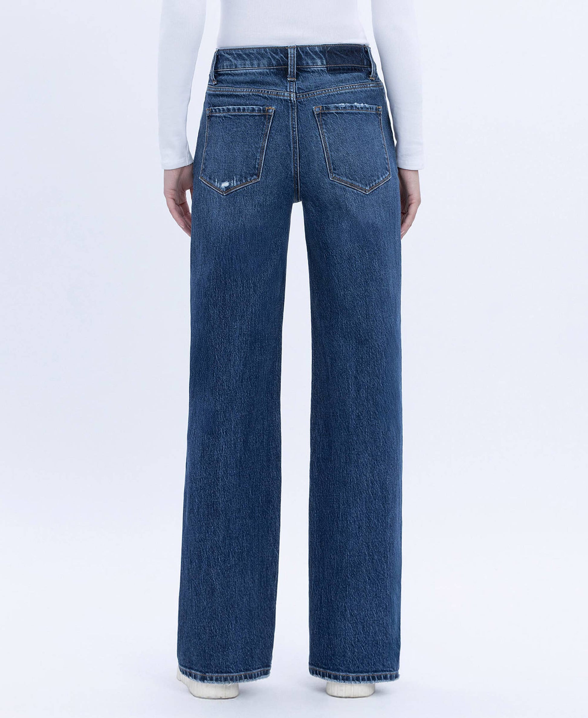90'S SUPER HIGH RISE DARK WASH WIDE JEANS