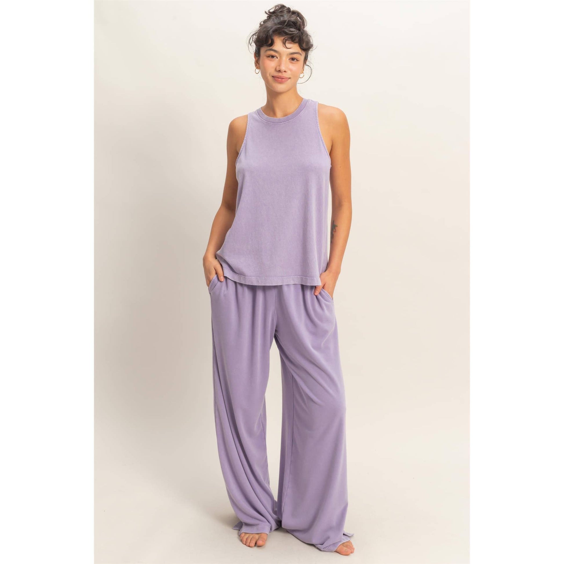 Fold Over Sweatpant Set: DUSTY PURPLE