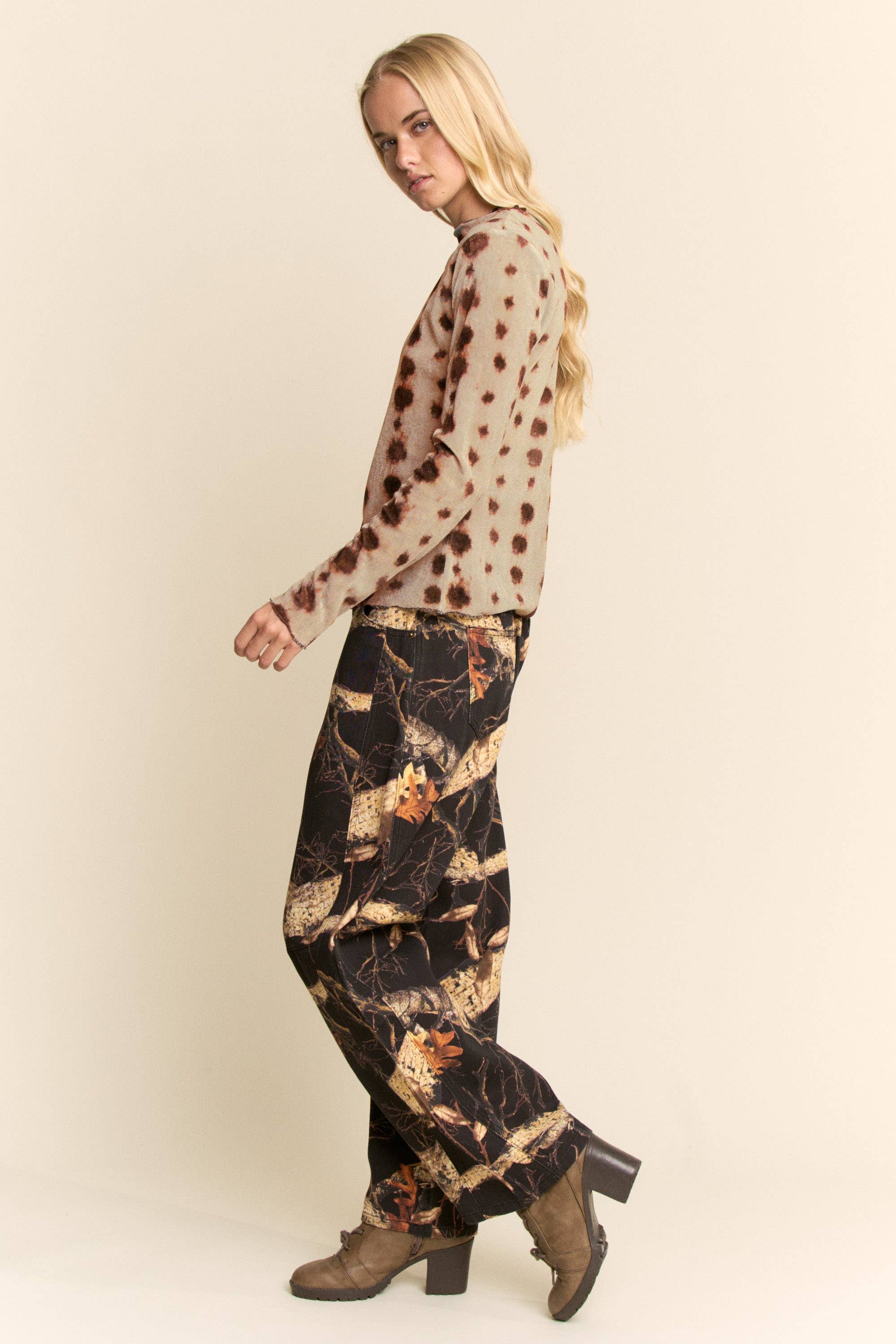 MESH TIE DYE LONG SLEEVE TOP: DOT-Taupe
