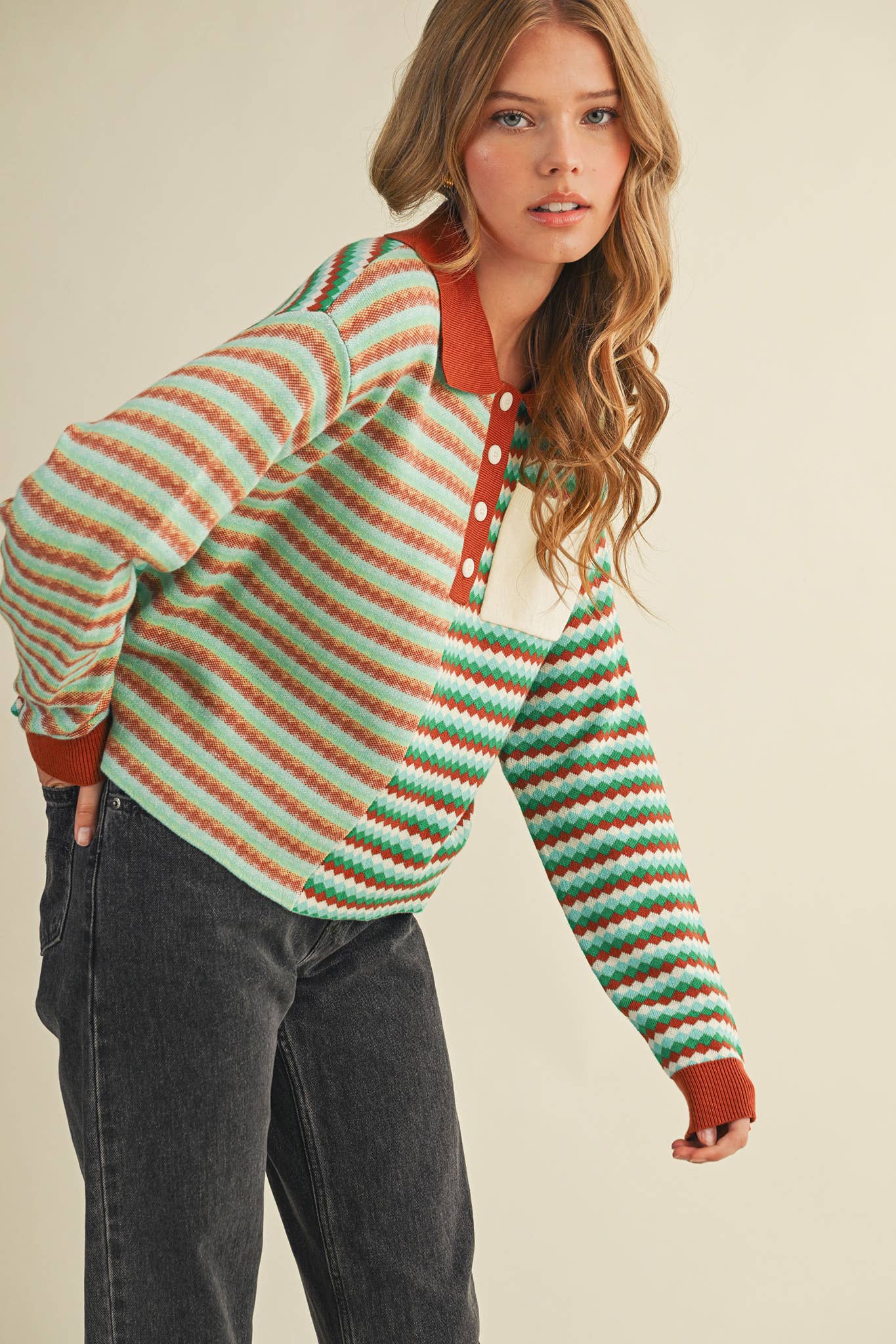 + Multi-color striped knit sweater