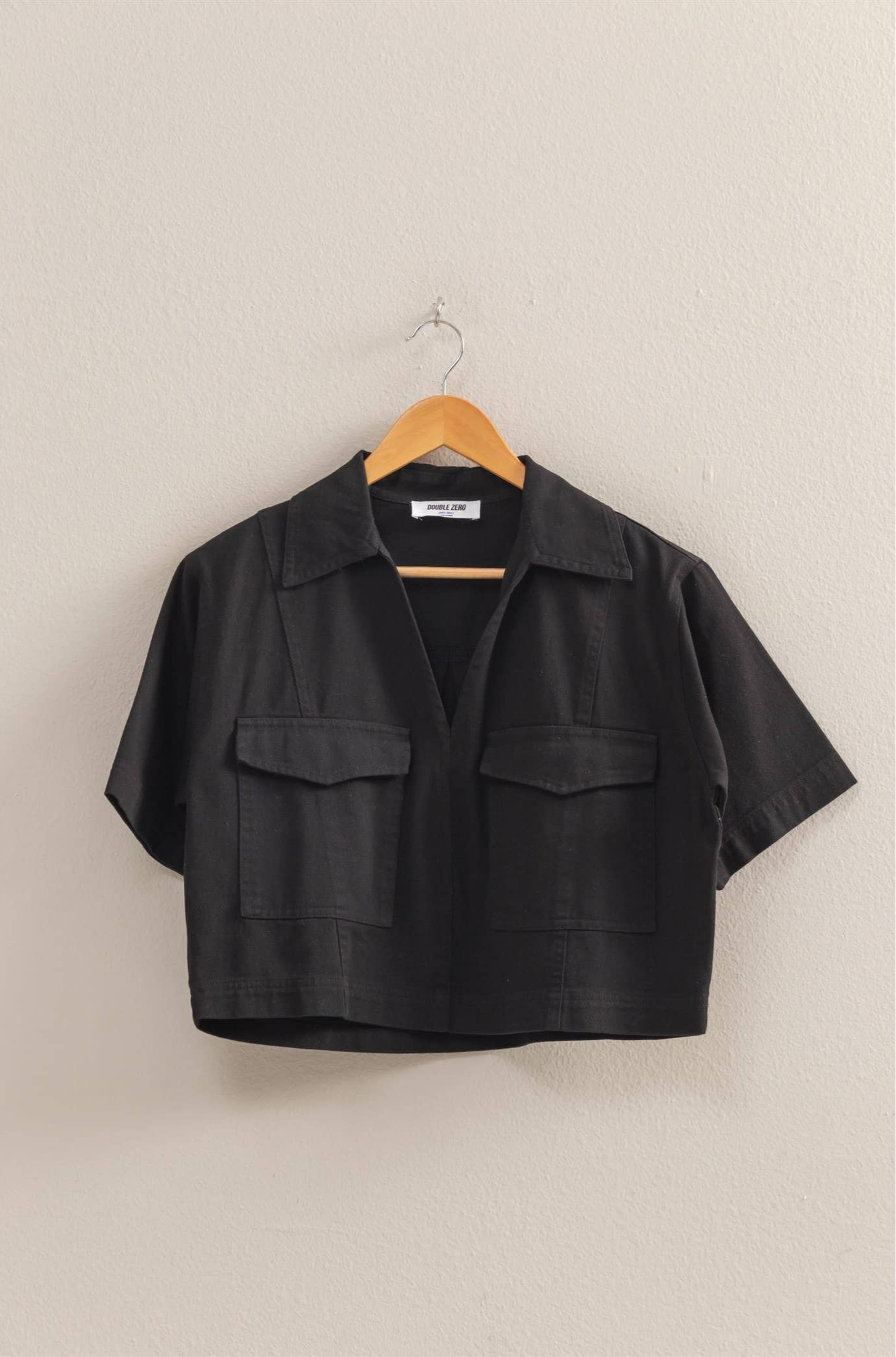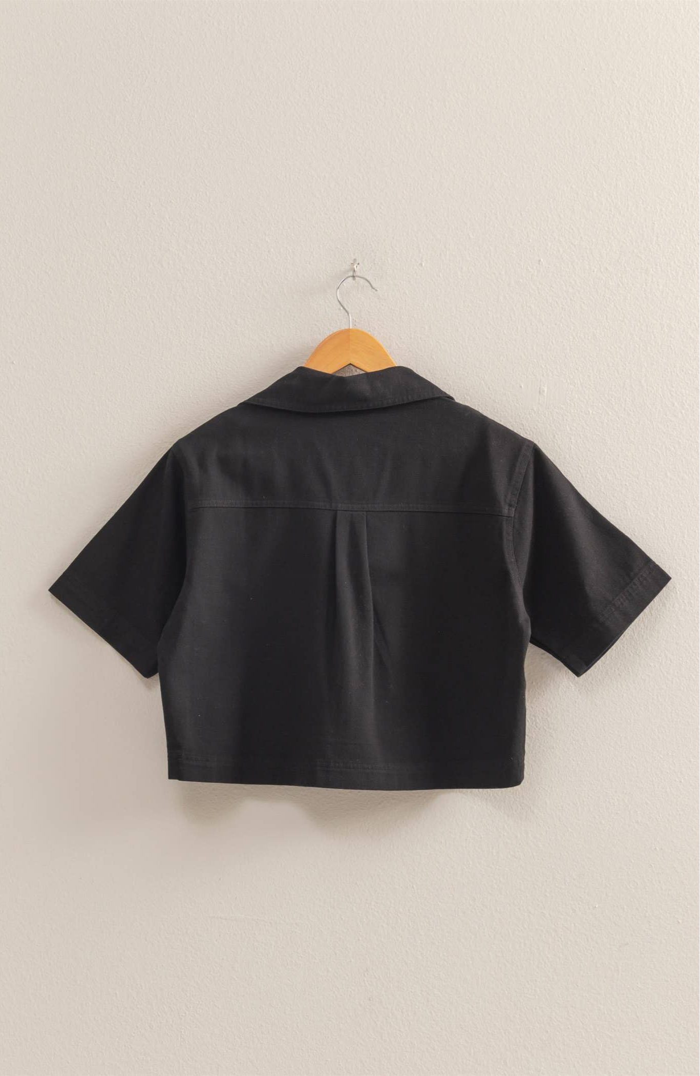 Spring Short Sleeve Denim Shirts: BLACK