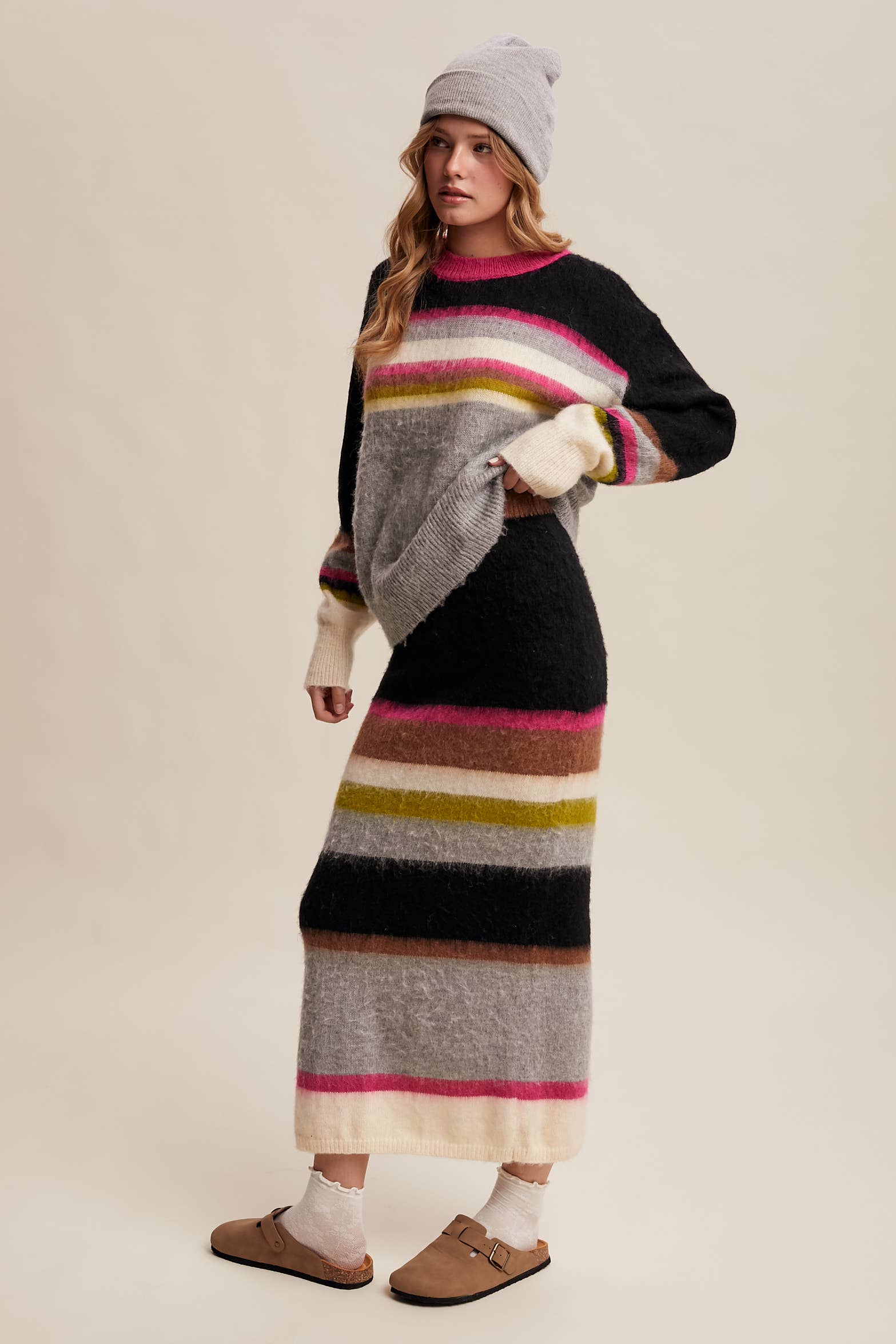 Striped Fuzzy Knit Sweater & Skirt: Light Pink Multi