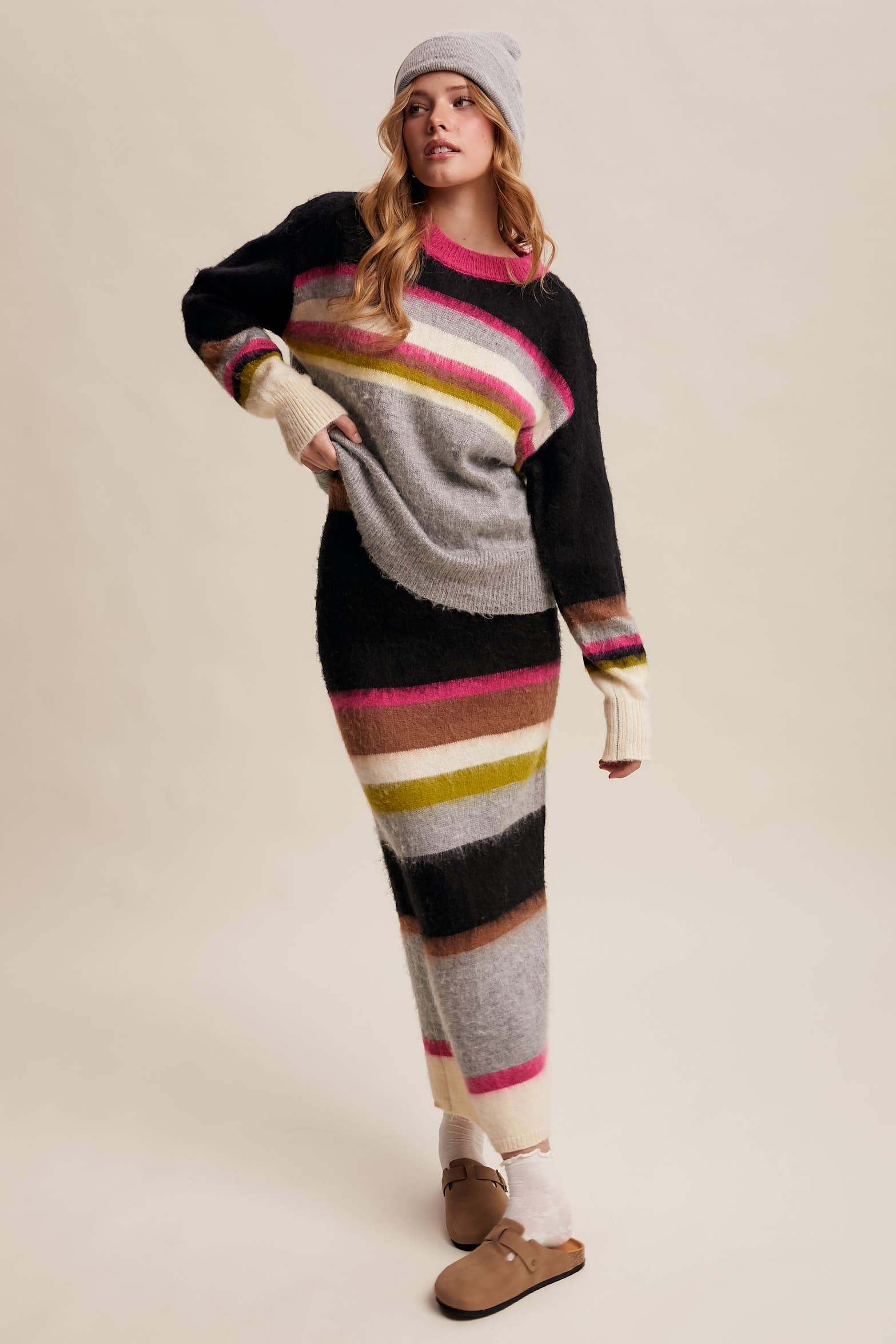 A statement set that brings cozy vibes and standout stripes to your seasonal wardrobe.