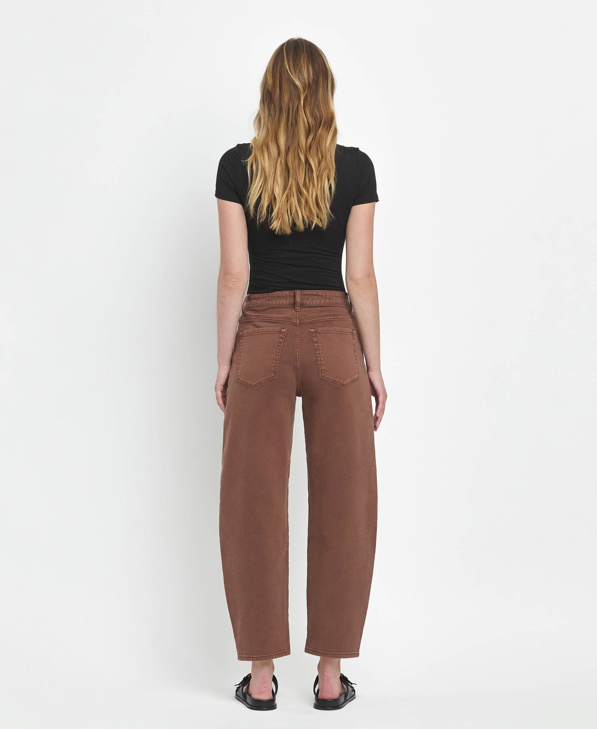 SUPER HIGH RISE BROWN SLIM BARREL JEANS