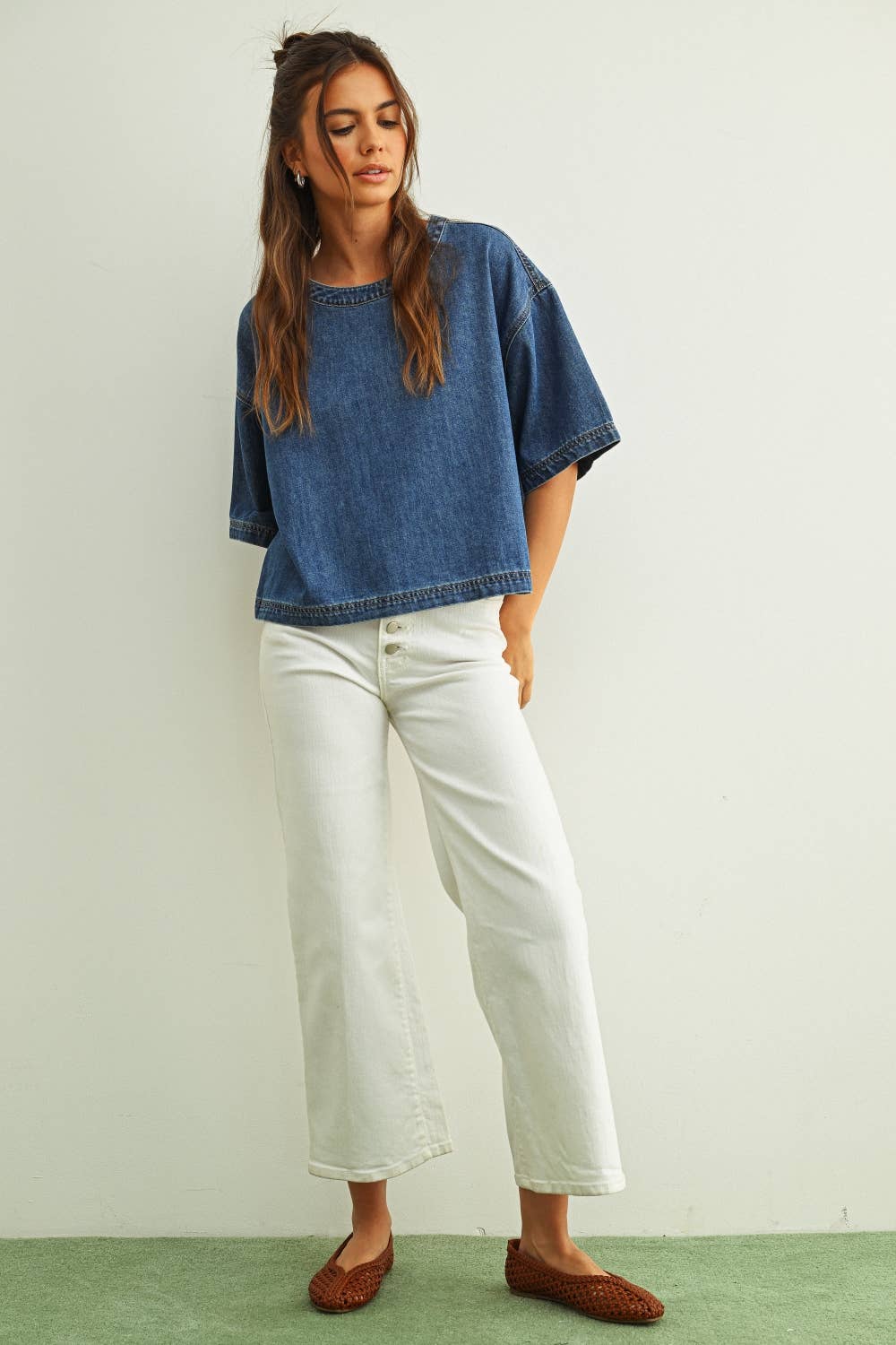 ROUND NECK SHORT SLEEVE DENIM TOP